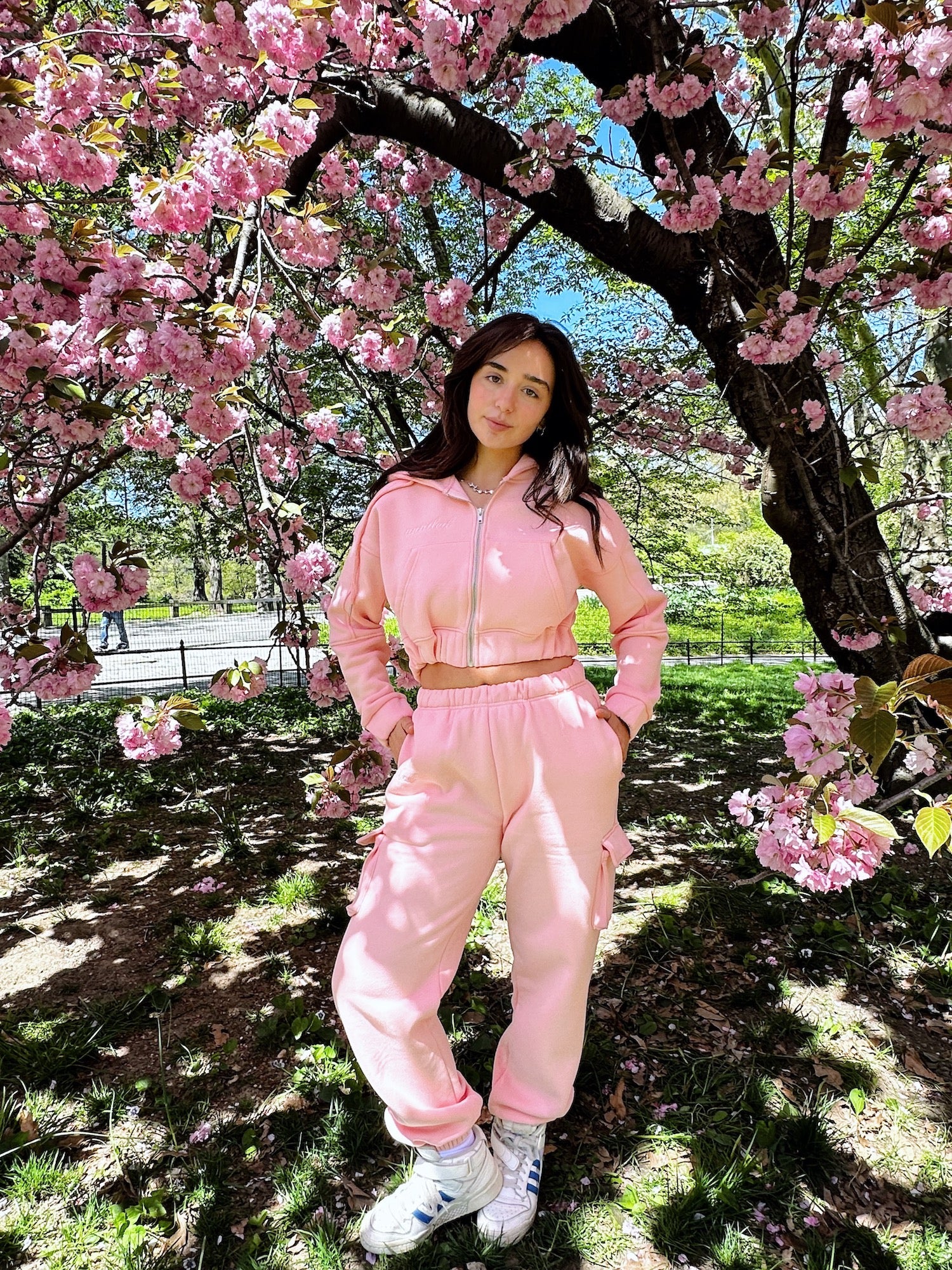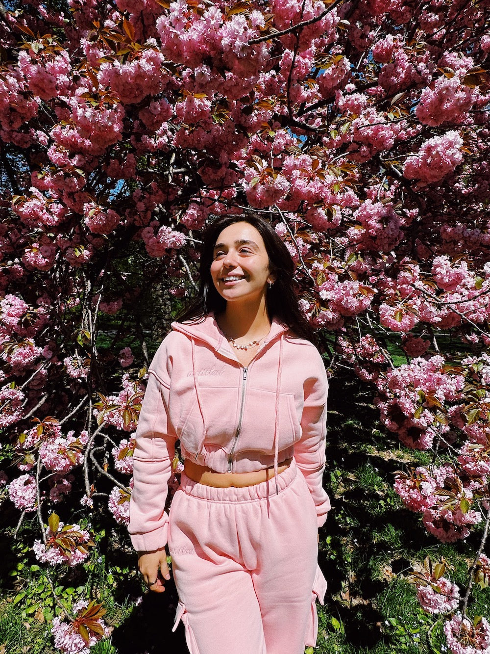 Your new favorite sweat set for Spring is here. This set is the perfect go-to for a comfy yet stylist look. This baby pink set features a cropped zipper hoodie with cargo sweatpants. Fits true to size for an oversized fit.